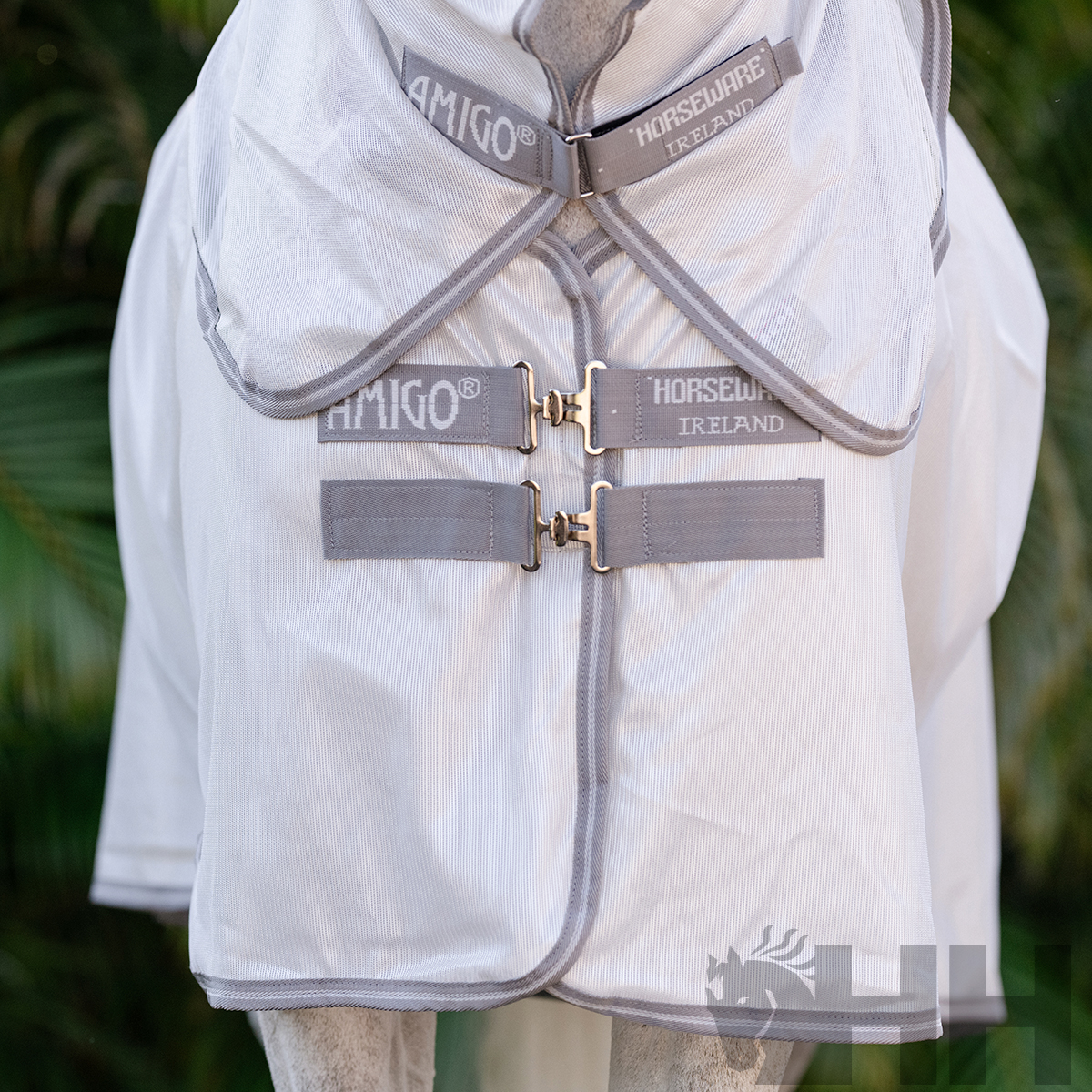 Manta realizada en poliéster ultra transpirable para proteger al caballo de todo tipo de insectos. Incorpora capucha para el cuello y el sistema patentado de diseño en arco para la posición de las manos del caballo y que éste pueda moverse con total libertad. Colores brillantes con propiedades que reflejan el sol, además de una divertida opción de estampado de libélulas.