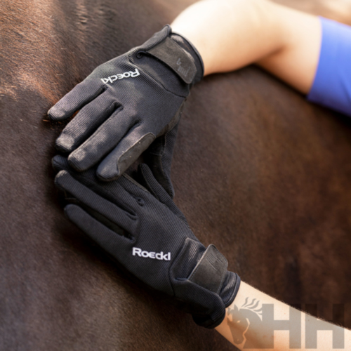Cómodo, elástico, funcional y versátil. El guante de equitación de verano MEURA de Roeckl Sports es un auténtico todoterreno para todo lo relacionado con los caballos. El spandex bidireccional extremadamente elástico del dorso proporciona máxima flexibilidad y libertad de movimiento para las manos y los dedos, tanto a caballo como en el trabajo en el establo, lo que garantiza una excelente comodidad y un ajuste perfecto. La palma, fabricada íntegramente en ECO.SENSE®, garantiza un agarre seguro y fiable de las riendas para una comunicación precisa y sensible con el caballo. Este material de ante sintético, suave, táctil, cómodo y muy duradero, tiene el mismo aspecto y tacto que el ante real, pero está hecho de un 60 % de poliéster reciclado, un 32 % de poliéster convencional y un 8 % de spandex. El amplio cierre de velcro en el dorso ayuda a ajustar el ajuste a la muñeca. Las costuras especiales COMFORT-CUT en los dedos índice perfeccionan la ya alta comodidad del MEURA sin necesidad de forros adicionales. Este guante es ideal para riendas de goma y cada versión está realzada por el logotipo de Roeckl en un fresco color blanco. Práctico e inteligente: Este modelo se puede lavar a máquina a 30 °C, por lo que está listo para usar enseguida. No contiene cuero.